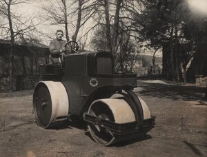 Schwarz-Weiß-Aufnahmen einer Zettelmeyer Motorwalze Typ L