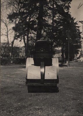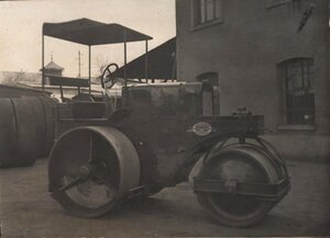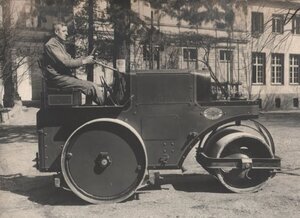 Schwarz-Weiß-Aufnahmen einer Zettelmeyer Motorwalze Typ L
