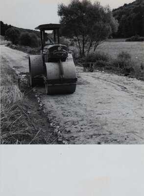 Schwarz-Weiß-Aufnahme einer Zettelmeyer Motorwalze Typ M