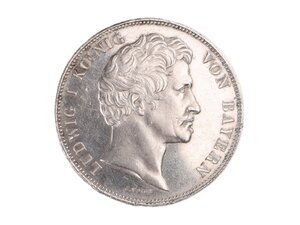 Die Münze zeigt die kreisförmige Anordnung von acht Lorbeerkränzen, die von Bändern umschlungen werden. Innerhalb der Kränze ist jeweils ein Schriftzug mit der Bezeichnung eines der Verwaltungsbezirke des bayerischen Königreiches aufgeführt. Zu lesen sind im Uhrzeigersinn: "Oberbayern, Niederbayern, Pfalz, O. Pfalz u. Reg., Oberfrank., Mitt. Frank., Unt. Fr. u. Asch, Schwab. u. Neub.". Im Inneren des Kränzekreises ist die siebenzeilige Aufschrift "Die Eintheilung d. Königreichs auf geschichtl. Grundlage zurückgeführt 1838" eingraviert. Der Revers zeigt König Ludwig I. im Profil. Im Jahr 1808 kam es zu einer grundlegenden Neuordnung der Verwaltung Bayerns, die von Maximilian von Montgelas initiiert wurden. Montgelas war damals der leitende Minister des zwei Jahre zuvor gegründeten Königreichs Bayern. Im Rahmen dieser Reform wurde auch die mittlere Verwaltungsebene komplett umgestaltet, wobei die historisch gewachsenen Territorialeinheiten aufgelöst und stattdessen fünfzehn administrative Kreise geschaffen wurden. Die Verwaltungsneugliederung von 1817 nach dem Wiener Kongress führte sieben der zwischen 1808 und 1816 geschaffenen 16 Kreise mit vergrößertem Umfang weiter. Die anderen Kreise wurden aufgelöst. Zusätzlich wurde der Untermainkreis als achter Kreis neu errichtet. 1837 ließ König Ludwig I. das französische Benennungssystem der bayerischen Kreise nach Flussnamen durch historisierende Bezeichnungen ersetzen, die die Geschichte der bayerischen Landesteile widerspiegeln sollten. Die Geschichtstaler nutzte Ludwig I. gekonnt, um sich und seine Familie ins Bild zu setzen. Die Darstellungen verweisen auf die Fortschritte Bayerns unter seiner Regentschaft im Bereich der Gesetzgebung, Infrastruktur, des Handels und des Bildungswesens. Die glückliche Verbindung von Tradition und Fortschritt ergibt sich im Überblick der einzelnen Taler, die sowohl die Verbindungen zur katholischen Kirche als auch die Förderung moderner Vorhaben wie der Eisenbahn als gedenkwürdig herausheben. Ludwig verweist auf die von ihm gestifteten Denkmäler zu Ehren der bayerischen Armee sowie verdienter Persönlichkeiten des Landes, darunter Vertreter aus Kunst und Literatur, womit er sie in doppelter Weise ins Gedächtnis der Bürgerinnen und Bürger einschreibt. Die Geschichtstaler wurden mitunter auch zur Kommunikation mit den Untertanen verwendet, so bedankte sich Ludwig in monarchischer Manier mittels einer Münzprägung von 1830 für die Treue der Bayern während der französischen Unruhen. Die propagandistische Absicht, patriotische Umlaufmünzen zu schaffen, erfüllte sich nicht, da die Geschichtstaler nur in geringen Auflagen geprägt wurden und eher bei Sammlern beliebt waren und weniger im Zahlungsverkehr genutzt wurden.