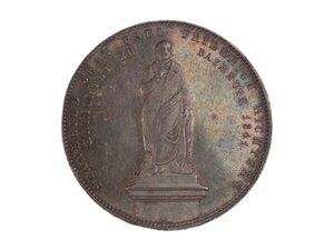 Die Münze zeigt die Frontalansicht des Standbildes Jean Pauls. Der Schriftsteller steht lässig ein Bein vor das andere absetzend an einen Baumstumpf gelehnt. In der erhobenen Rechten hält er eine Schreibfeder. Die Aufschrift lautet: "STANDBILD JEAN PAUL FRIEDRICH RICHTER'S. ERRICHTET ZU - BAYREUTH 1841". Der Revers zeigt König Ludwig I. im Profil. Jean Paul, dessen Werk keiner literarischen Epoche eindeutig zuzuweisen ist, nimmt in der deutschen Literatur eine Sonderstellung ein. Der fränkische Autor lebte von 1804 bis zu seinem Tod im Jahr 1825 in der Friedrichstraße in Bayreuth. Dort, am Jean-Paul-Platz, steht das im Auftrag des bayerischen Königs Ludwig I. errichtete, von Ludwig Schwanthaler geschaffene Jean-Paul-Denkmal. Ludwig I. hatte im Vorjahr bereits dem Künstler Albrecht Dürer in dessen Heimatstadt Nürnberg ein Denkmal errichten lassen und sollte mit den Büsten in der im Folgejahr eingeweihten Walhalla seine Ehrungen fortsetzen. Die Geschichtstaler nutzte Ludwig I. gekonnt, um sich und seine Familie ins Bild zu setzen. Die Darstellungen verweisen auf die Fortschritte Bayerns unter seiner Regentschaft im Bereich der Gesetzgebung, Infrastruktur, des Handels und des Bildungswesens. Die glückliche Verbindung von Tradition und Fortschritt ergibt sich im Überblick der einzelnen Taler, die sowohl die Verbindungen zur katholischen Kirche als auch die Förderung moderner Vorhaben wie der Eisenbahn als gedenkwürdig herausheben. Ludwig verweist auf die von ihm gestifteten Denkmäler zu Ehren der bayerischen Armee sowie verdienter Persönlichkeiten des Landes, darunter Vertreter aus Kunst und Literatur, womit er sie in doppelter Weise ins Gedächtnis der Bürgerinnen und Bürger einschreibt. Die Geschichtstaler wurden mitunter auch zur Kommunikation mit den Untertanen verwendet, so bedankte sich Ludwig in monarchischer Manier mittels einer Münzprägung von 1830 für die Treue der Bayern während der französischen Unruhen. Die propagandistische Absicht, patriotische Umlaufmünzen zu schaffen, erfüllte sich nicht, da die Geschichtstaler nur in geringen Auflagen geprägt wurden und eher bei Sammlern beliebt waren und weniger im Zahlungsverkehr genutzt wurden.