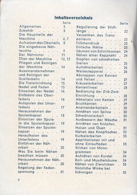 Die Gebrauchsanleitung für die Quelle Nähmaschine „IDEAL" hat einen Umfang von 38 Seiten im DIN A 6 Format. Auf den ersten Seiten befindet sich das Inhaltsverzeichnis. In dem Heft wird ausführlich erklärt wie die Nähmaschine gepflegt werden soll, welche Handgriffe für das Nähen notwendig sind und wie einfache Störungen beseitigt werden können. Die Gebrauchsanweisung gilt für einenn mechanischen und einen elektrischen Antrieb gleichermaßen.