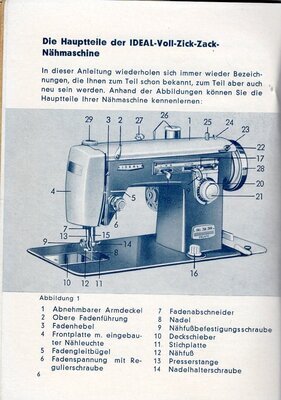Gebrauchtsanleitung für Nähmaschine Quelle Ideal Voll-Zick-Zack mit Elektromotor