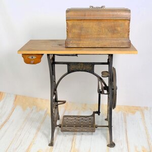 Die Nähmaschine Phönix Mod. „F“ wurde von der Firma Baer & Rampel, Bielefeld wurde zwischen 1891 bis 1900 hergestellt. Unser Objekt, mit der Herstellungsnummer 235621, lässt sich in etwa dem Produktionsjahr 1898 zuordnen. Auf der Abdeckplatte der Spule ist der Name des Herstellers und die Fabriknummer eingraviert. Maschine und Grundplatte sind schwarz lackiert und mit goldfarbenen Mustern und bunten Blumen aufgelockert. Der Name „PHÖNIX“ ist beiderseits am Maschinenarm angebracht. Ausgeliefert wurde der „Schnellnäher mit Rundgreifer“ als Tischmodell, mit einem Gusseisernen Unterbau. Irgendwann wurde die Tischplatte (nicht ganz professionell) erneuert und die alte Schublade wieder angebracht. Sie enthält noch verschiedene Nähutensilien, die größtenteils in einer Blechschachtel untergebracht sind. Abgedeckt wird die Maschine mit einer Holzhaube, ebenfalls mit dem Namen Phönix. Die Schlösser von Haube und Schublade sind funktionsfähig, der Schlüssel noch vorhanden. Der Gusseiserne Unterbau ist ca. 8 cm schmäler wie bei den meisten Maschinen, da die Konstrukteure das Schwungrad außerhalb des Fußraums angebracht haben. Rechts und links an den Seitenteilen, ist das Firmenlogo (der Phönix) mit eingegossen. (s. Bild) Leider ist die Mechanik so verharzt, dass eine Bewegungkaum noch möglich ist.