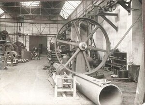 Schwarz-Weiß-Aufnahmen in Werkstatthallen der Firma Zettelmeyer