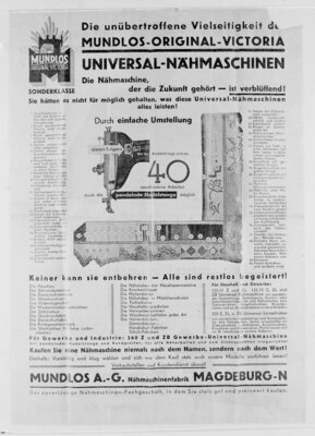 Werbeblatt für Nähmaschine Mundlos - Original Victoria