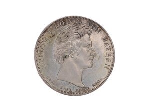Der Taler zeigt einen stehenden Löwen, dessen Kopf im Profil dargestellt ist und der mit seinen Tatzen einen Schild mit der Inschrift "Gerecht und beharrlich" hält. Darunter ist die Jahreszahl 1831 zu lesen. Der Revers zeigt König Ludwig I. im Profil. Die Medaille würdigt den bayerischen Landtag von 1831. Der bayerische Löwe dient bildlich als einheitsstiftendes Symbol zwischen der Regierung und den Abgeordneten während es in Wahrheit zahlreiche Spannungen und Meinungskonflikte zwischen dem König und den Abgeordneten der Kammer gegeben hatte. Die Regierung Ludwigs I. von Bayern war eine Umbruchszeit. Es gab noch kein ausgereiftes Verständnis von einer konstitutionellen Monarchie, dem Wechselspiel zwischen Königtum und Verfassungsstaat. Ludwig I. beachtete die Verfassung, an der er als Kronprinz mitgewirkt hatte. Er wollte sich jedoch nicht von ihr einschränken lassen. Daher hielt er Distanz zu den beiden Kammern des Landtags, ebenso wie zu seinen Ministern, die er nur als Gehilfen seiner Politik, nicht aber als selbständige Köpfe betrachtete. Auf dem 5. Landtag von 1831 wurde die Wiedereinführung der Zensur beschlossen. Ludwig I. war an der Unterdrückung kritischer Pressestimmen gelegen. Die Minister wollen den König davon abbringen, in ihre Verantwortungsbereiche hineinzuregieren und Verordnungen zu erlassen, deren Inhalt sie erst aus der Presse erfahren. Sie wollen als geschlossenes Ministerium dem Landtag gegenübertreten können. Sie wollen also praktisch die volle Ministerverantwortlichkeit in dem Sinne, dass der König die Vorgaben festlegt, welche die Minister selbstständig ausführen. Die Abgeordneten unterstützen dies, indem sie einstimmig ein Gesetz über Ministerverantwortlichkeit fordern. Um 1831 gelang die Wende in der Haushaltspolitik, die Staatsschulden wurden seitdem schrittweise verringert. Die Abgeordneten kürzen den Gesamtetat von 28 auf 26,8 Millionen Gulden. Die Geschichtstaler nutzte Ludwig I. gekonnt, um sich und seine Familie ins Bild zu setzen. Die Darstellungen verweisen auf die Fortschritte Bayerns unter seiner Regentschaft im Bereich der Gesetzgebung, Infrastruktur, des Handels und des Bildungswesens. Die glückliche Verbindung von Tradition und Fortschritt ergibt sich im Überblick der einzelnen Taler, die sowohl die Verbindungen zur katholischen Kirche als auch die Förderung moderner Vorhaben wie der Eisenbahn als gedenkwürdig herausheben. Ludwig verweist auf die von ihm gestifteten Denkmäler zu Ehren der bayerischen Armee sowie verdienter Persönlichkeiten des Landes, darunter Vertreter aus Kunst und Literatur, womit er sie in doppelter Weise ins Gedächtnis der Bürgerinnen und Bürger einschreibt. Die Geschichtstaler wurden mitunter auch zur Kommunikation mit den Untertanen verwendet, so bedankte sich Ludwig in monarchischer Manier mittels einer Münzprägung von 1830 für die Treue der Bayern während der französischen Unruhen. Die propagandistische Absicht, patriotische Umlaufmünzen zu schaffen, erfüllte sich nicht, da die Geschichtstaler nur in geringen Auflagen geprägt wurden und eher bei Sammlern beliebt waren und weniger im Zahlungsverkehr genutzt wurden.