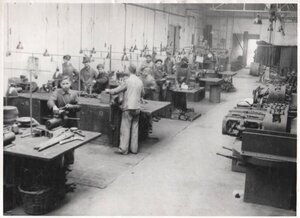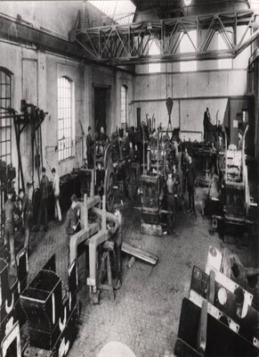 Schwarz-Weiß-Aufnahmen der Schlosserei der Firma Zettelmeyer