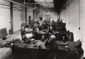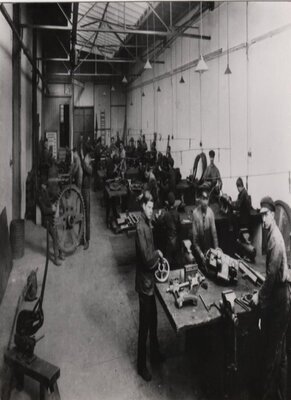 Schwarz-Weiß-Aufnahmen der Schlosserei der Firma Zettelmeyer