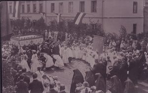 Fronleichnamsprozessin mit Baldachin