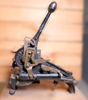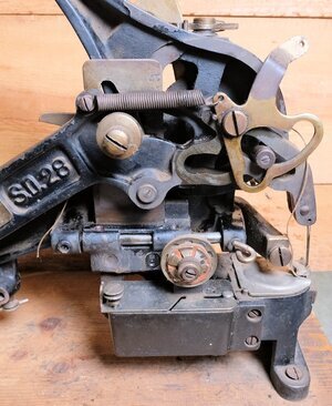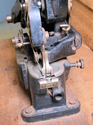 Neben normalen Haushaltsnähmaschinen hat Junker und Ruh auch spezielle Maschinen zum Gebrauch im Handwerk, (Schuster, Sattler) hergestellt. So auch die Doppler Maschine „Junker & Ruh, Modell SD 28“. Sie trägt die Seriennummer 55117 und die Buchstaben D R P sowie den Zusatz „Made in Germany“ Das Produktionsdatum kann daher auf die 1950er Jahre eingegrenzt werden. Die Maschine kommt aus einer Schumacher Werkstatt, in der sie zum sogenannten Doppeln Verwendung fand. Unter Doppeln versteht man den Arbeitsschritt, wenn die Ledersohle mit dem Schuh zusammengenäht wird. Jeder Stich wird durch das manuelle Niederdrücken des Handhebels einzeln ausgeführt. Die SD 28 wurde von ihrem ehemaligen Besitzer auf ein einfaches Holzbrett aufgeschraubt.