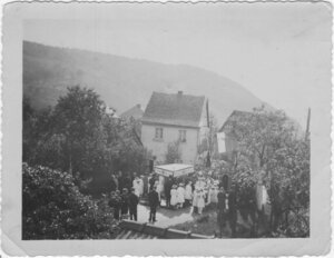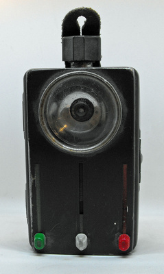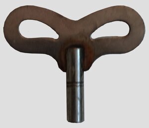 Weißglasierte Keramikblende mit waagerecht verlaufendem Schmuckband in Natursteinoptik. Das runde Ziffernblatt ist mit Zahlen von 1 bis 12 und einer Minuteneinteilung versehen. Das mechanische Uhrwerk ist in einer Dose rückseitig eingebaut, die einen Durchmesser von 145 mm und eine Tiefe von 50 mm hat. Aufgehangen wird die Uhr an einer gelochten Metallplatte, die mit dem Uhrengehäuse verbunden ist. Rückseitig ragt aus dem Uhrengehäuse ein Draht, mit dem die (Unruhe der) Uhr angehalten werden kann. Zur Uhr gibt es noch den original Uhrenschlüssel, mit dem das Uhrwerk aufgezogen werden musste.