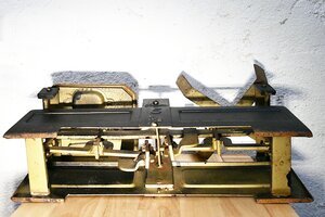 Tafelwaage aus dem Hause Rhewa (Rheinische Waagenfabrik A. Freudewald) nach dem Konstruktionsprinzip von Joseph Béranger mit einem Eichstempel für eine Eichung bis 1965. Die Waage besitzt auf der einen Seite eine Halterung für die Schütte und auf der anderen Seite eine Tafel zur Auflage der Gewichte. Sie ist für ein Gewicht von bis zu 5 kg zugelassen. In der Mitte der Waage befindet sich auf der Front- und auf der Rückseite das Logo/der Schriftzug der Marke Rhewa, darunter eine "5" und darunter "Kg". Eine Tafelwaage unterscheidet sich von einer einfachen Balkenwaage durch das Gestänge im Inneren. Dieses bewirkt, dass das Moment am Waagebalken von der Position der Gewichte auf der Schale unabhängig ist. Auch werden Schrägstellung als auch Standortbewegungen bei der Béranger-Waage besser kompensiert, was die Nutzungsmöglichkeiten der Tafelwaage wesentlich erweitert. Am Gestänge der Waage befindet sich als Schlagstempel ein sehr schlecht lesbare Eichstempel - möglicherweise 11 / DR / 7 . Es handelt sich hier um den Eichaufsichtsbezirk Köln mit Eichamt Düsseldorf mit dem Jahrgangsstempeln 65 für das Jahre 1965 bis zu dem die jeweilige Eichung gültig war. Wir bedanken uns beim Landesamt für Mess- und Eichwesen Rheinland-Pfalz für die Informationen zum Eichwesen.
