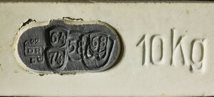 Weiß lackierte Tafelwaage des Herstellers Mikro Waagenfabrik Döft oHG nach dem Konstruktionsprinzip von Joseph Béranger. Eine Tafelwaage unterscheidet sich von einer einfachen Balkenwaage durch das Gestänge im Inneren. Dieses bewirkt, dass das Moment am Waagebalken von der Position der Gewichte auf der Schale unabhängig ist. Auch werden Schrägstellung als auch Standortbewegungen bei der Béranger-Waage besser kompensiert, was die Nutzungsmöglichkeiten der Tafelwaage wesentlich erweitert. Die Waage besitzt auf der einen Seite eine Halterung für die Schütte und auf der anderen Seite eine Tafel zur Auflage der Gewichte. Sie ist für ein Gewicht von bis zu 10 kg zugelassen. In der Mitte der Waage befindet sich auf der Front- und auf der Rückseite ein Aufkleber mit dem oben dem Adlerlogo der Firma Mikro Waagenfabrik Döft oHG und darunter ein Aufkleber mit dem Text 10kg. Am Gestänge der Waage befindet sich als Schlagstempel ein sehr schlecht lesbare Eichstempel - möglicherweise 22 / DR / 5 . Es handelt sich hier um den Eichaufsichtsbezirk Stuttgart, Eichamt Eichamt Heilbronn oder dessen Nebenstellen in Öhringen oder Künzelsau. Rechts daneben befinden sich mehrere Jahrgangsstempeln (bis zu dem die jeweilige Eichung gültig war) von 58 für das Jahre 1958 bis 74 für das Jahr 1974. D.h. die Waage muss zwischen 1948 (Gründung der Firma) und 1956 (Eichung bis 1958) gebaut worten sein. Auf der Waage befindet sich ein Aufkleber "Haushaltswaage", der wohl im Zusammenhang mit dem Eintrag in das Eingangsbuch angebracht worden ist. Vielleicht war sie dies zum Ende ihres praktischen Einsatzes, aber vorher war sie definitiv im gewerblichen Einsatz, da sie als Haushaltswaage definitiv nicht so oft geeicht worden wäre. Ein auf der Waage liegender Holzteller mit der Aufschrift Kurt Sambale ff. Fleisch- u. Wurstwaren L i p p s t a d t Tel. 2951 könnte vom letzten Einsatzort stammen. Wir bedanken uns beim Landesamt für Mess- und Eichwesen Rheinland-Pfalz für die Informationen zum Eichwesen.