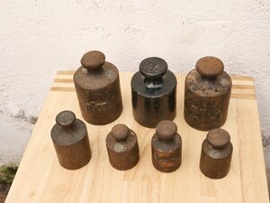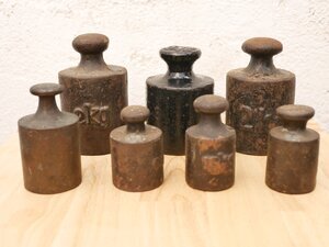 7 Gewichtssteine für Tafelwaagen, drei zu 2kg, einer zu 1 kg, und drei zu 0.5 kg. Fünf von diesen besitzen Eichstempel 4 / DR / 9 ( Aufsichtsdirektion Bad Kreuznach, Eichamt Trier) Eichstempel 4 / DR / 5 ( Aufsichtsdirektion Bad Kreuznach, Eichamt Koblenz) einer weiteres Gewicht einen entwerteten und nicht mehr lesbaren Stempel Die Gewichtssteine besitzen die Jahreszahlen 57, 62 und 66.
