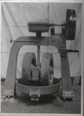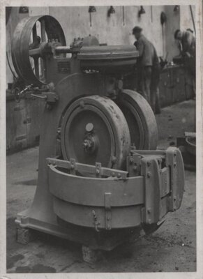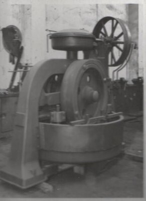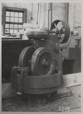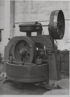 Zehn Fotografien sogenannter Kollergang-Maschinen. Mit Kollergang bezeichnet man ein Mahlwerk, mit dem Steine, Erze oder andere Rohstoffe zerkleinert werden können. Mittels einer oder mehrerer Scheiben, die aufrecht stehend sich auf einer Bodenplatte drehen, werden eingefüllte Materialien gemahlen. Mit dem Erwerb der Trierer Eisengießerei und Maschinenfabrik Feuerstein stieg die Firma Zettelmeyer 1934 in die Fertigung von Maschinen für die keramische Industrie ein. Die Bilder sind ca. 1950 entstanden und zeigen Maschinen, die von der Firma Zettelmeyer in Serien von sechs Exemplaren unter anderem für die Firmen Villeroy und Boch sowie die in Höhr Grenzhausen beheimatete Firma Steuler hergestellt wurden.