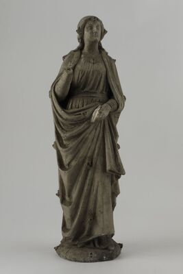 Die nackte, männliche Figur ist kräftig-muskulös, wobei die Rückseite genauso detailreich wie die Vorderseite gearbeitet ist. Die Bartlosigkeit ist ein Zeichen von Jugendlichkeit. Der Hinterkopf ist tonsurartig ausgebrochen, ein Hinweis darauf, dass dieser mit einem Kranz, einer Strahlenkrone oder einer anderen Kopfbedeckung separat gegossen und später angenietet war. Beide Arme und das linke Bein unterhalb des Knies fehlen. Der rechte Arm war nach der Ausrichtung seines Ansatzes erhoben und das rechte Standbein auf einer heute fehlenden Standbasis fixiert, das linke Bein war leicht nach hinten gesetzt. Aufgrund des vollständigen Fehlens von Attributen ist eine Zuweisung und Benennung der Figur nicht zweifelsfrei vorzunehmen. Das Darstellungsschema eines nackten, jungen, bartlosen Mannes trifft zunächst auf einige römische Götter zu. Das fast immer vorhandene Erkennungszeichen des Sonnengottes Sol ist ein Strahlenkranz, den er auf dem Kopf trägt, aber auch seine Jugendlichkeit, verdeutlicht durch eine bartlose Darstellung. Der Gott tritt nackt auf oder aber bekleidet mit lediglich einem Umhang über den Schultern. Attribute sind Peitsche und Globus, die ihn als Wagenlenker am Firmament klassifizieren. Häufig ist er mit erhobenem rechten Arm im Grußgestus dargestellt. Das rechte Standbein ist auf einer Basis aufgesetzt, das linke leicht angewinkelt zurückgestellt. Die übliche Abbildung des Sonnengottes hat damit die meisten Übereinstimmungen mit der Statuette aus Hottenbach, die deshalb wohl mit größter Wahrscheinlichkeit als Sol bzw. Sol-Apollon angesprochen werden darf. Dem Bildnis liegt ein Vorbild zugrunde, denn es gibt in vielen Details eine ganze Reihe übereinstimmender Kleinbronzen. Soldarstellungen sind als Zeugnisse eines weit verbreiteten Kultes im gesamten römischen Imperium anzutreffen. Die Handwerker in den Provinzen formten das Vorbild, auch wenn es vielleicht nicht immer genau bekannt war, nach eigenem Können oder Geschmack um. Im Falle der Statuette von Hottenbach war das Können recht groß, denn sie ist qualitativ hochwertig und reicht über das übliche Maß der ‚gewöhnlichen‘ Kleinbronzen hinaus. Auf Münzen trat Sol seit Beginn des 3. Jhs. n. Chr. mit Strahlenkrone und erhobenem rechten Arm auf und es ist auch die im 3. Jh. n. Chr. üblichste Darstellungsart des Gottes auf Münzen. Mit einiger Wahrscheinlichkeit lässt sich anhand von stilistischen Vergleichen die Herstellung der Statuette auf das 2.-3. Jh. n. Chr. eingrenzen. Restauratorische Untersuchungen ergaben, dass die Statuette sehr wahrscheinlich bei einem Brand beschädigt wurde. Möglicherweise wurde sie durch herabstürzendes Material dabei auch von der Standbasis herausgebrochen, wie auch die Kopfbedeckung zusammen mit der gegossenen Kalotte. Die Figur lag auf ihrer Vorderseite, was kleine Zinnansammlungen und Aufwerfungen in den Vertiefungen ihrer Rückseite belegen. Die Metallauflage hat sich an einigen Stellen komplett abgelöst.