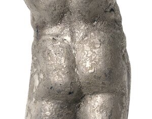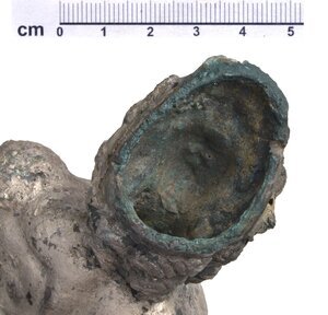 Die nackte, männliche Figur ist kräftig-muskulös, wobei die Rückseite genauso detailreich wie die Vorderseite gearbeitet ist. Die Bartlosigkeit ist ein Zeichen von Jugendlichkeit. Der Hinterkopf ist tonsurartig ausgebrochen, ein Hinweis darauf, dass dieser mit einem Kranz, einer Strahlenkrone oder einer anderen Kopfbedeckung separat gegossen und später angenietet war. Beide Arme und das linke Bein unterhalb des Knies fehlen. Der rechte Arm war nach der Ausrichtung seines Ansatzes erhoben und das rechte Standbein auf einer heute fehlenden Standbasis fixiert, das linke Bein war leicht nach hinten gesetzt. Aufgrund des vollständigen Fehlens von Attributen ist eine Zuweisung und Benennung der Figur nicht zweifelsfrei vorzunehmen. Das Darstellungsschema eines nackten, jungen, bartlosen Mannes trifft zunächst auf einige römische Götter zu. Das fast immer vorhandene Erkennungszeichen des Sonnengottes Sol ist ein Strahlenkranz, den er auf dem Kopf trägt, aber auch seine Jugendlichkeit, verdeutlicht durch eine bartlose Darstellung. Der Gott tritt nackt auf oder aber bekleidet mit lediglich einem Umhang über den Schultern. Attribute sind Peitsche und Globus, die ihn als Wagenlenker am Firmament klassifizieren. Häufig ist er mit erhobenem rechten Arm im Grußgestus dargestellt. Das rechte Standbein ist auf einer Basis aufgesetzt, das linke leicht angewinkelt zurückgestellt. Die übliche Abbildung des Sonnengottes hat damit die meisten Übereinstimmungen mit der Statuette aus Hottenbach, die deshalb wohl mit größter Wahrscheinlichkeit als Sol bzw. Sol-Apollon angesprochen werden darf. Dem Bildnis liegt ein Vorbild zugrunde, denn es gibt in vielen Details eine ganze Reihe übereinstimmender Kleinbronzen. Soldarstellungen sind als Zeugnisse eines weit verbreiteten Kultes im gesamten römischen Imperium anzutreffen. Die Handwerker in den Provinzen formten das Vorbild, auch wenn es vielleicht nicht immer genau bekannt war, nach eigenem Können oder Geschmack um. Im Falle der Statuette von Hottenbach war das Können recht groß, denn sie ist qualitativ hochwertig und reicht über das übliche Maß der ‚gewöhnlichen‘ Kleinbronzen hinaus. Auf Münzen trat Sol seit Beginn des 3. Jhs. n. Chr. mit Strahlenkrone und erhobenem rechten Arm auf und es ist auch die im 3. Jh. n. Chr. üblichste Darstellungsart des Gottes auf Münzen. Mit einiger Wahrscheinlichkeit lässt sich anhand von stilistischen Vergleichen die Herstellung der Statuette auf das 2.-3. Jh. n. Chr. eingrenzen. Restauratorische Untersuchungen ergaben, dass die Statuette sehr wahrscheinlich bei einem Brand beschädigt wurde. Möglicherweise wurde sie durch herabstürzendes Material dabei auch von der Standbasis herausgebrochen, wie auch die Kopfbedeckung zusammen mit der gegossenen Kalotte. Die Figur lag auf ihrer Vorderseite, was kleine Zinnansammlungen und Aufwerfungen in den Vertiefungen ihrer Rückseite belegen. Die Metallauflage hat sich an einigen Stellen komplett abgelöst.