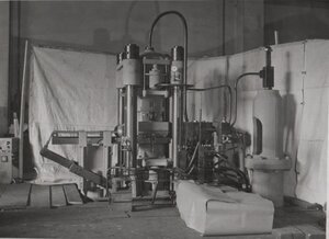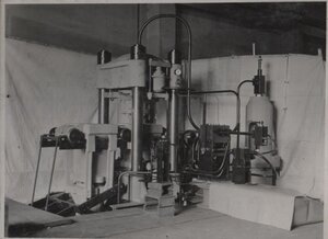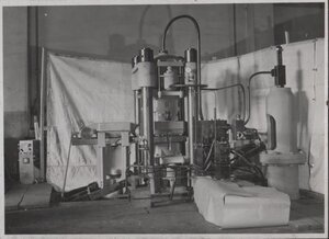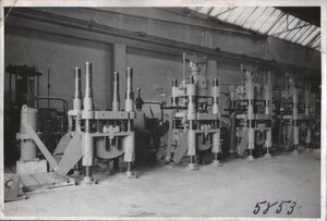 Schwarz-Weiß-Aufnahmen von Vierplattenpressen der Firma Zettelmeyer