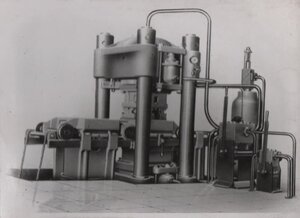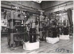 Schwarz-Weiß-Aufnahmen von Vierplattenpressen der Firma Zettelmeyer