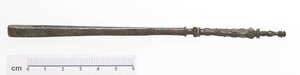 In einem Kapitel zu Koliken gab Alexander Tralleis folgenden Rat: «Man schneide in einen Medischen Stein das Bild des Herakles, wie er in aufrechter Stellung den Löwen erdrosselt, und lasse den Stein in einen goldenen Ring fassen und tragen» (Über die Kolik 8,2). Über seine schützende Bedeutung im Alltagsleben der Frauen und Kinder hinaus vertraute man dem Heros auch bei bestimmten körperlichen Beschwerden, was seine häufige Darstellung auf medizinisch-magisch wirkenden Gemmen beweist. Das bildliche Ringen mit dem Löwen und die Überwindung des wilden Tieres sollten wohl auch der Krankheit den Kampf ansagen, die Stärke des Helden auf den Patienten übertragen. Doch seine Heilkünste wirkten offenbar nicht nur auf die kranke Person. Auch die Wirkung seiner eingesetzten Waffen wurde durch ihre Darstellung auf medizinisches Gerät abgegeben, wie eine Miniaturkeule am Griff einer Pinzette zeigt. Sie war eine Beigabe in einem Trierer Grab, in dem sich neben einer Tonlampe und einer Münze des Kaisers Septimius Severus auch ein Glasbalsamarium befunden haben soll, außerdem eine kleine Bronzeschale mit enthaltenen Resten eiserner Geräte, die jedoch nicht mehr zu identifizieren waren. Solche Schälchen fanden sich häufig in Arztgräbern und dienten zum Mischen von Medikamenten. Dennoch sind die wenigen Beigaben nicht Indiz genug für ein Arztgrab. 1880 wurde dieses Ensemble vom Trierer Provinzialmuseum angekauft.