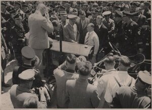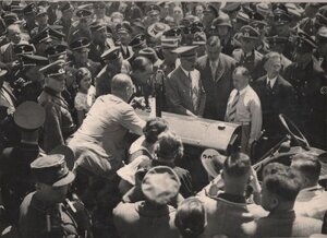 Zwei Schwarz-Weiß-Bilder die unter anderem Adolf Hitler am Ausstellungsstand der Firma Zettelmeyer zeigen. Seit 1934 wurden Reichsnährstandsausstellungen durchgeführt. Damit sollten die Landwirtschaft und die entsprechende Politik des Deutschen Reiches präsentiert werden. Gleichzeitig wurde für landwirtschaftliche Berufe geworben und Deutschland auf eine bessere Selbstversorgung vorbereitet. 1937 fand diese Veranstaltung auf der Theresienwiese in München statt. Die Fotos sind entstanden, als der Kundendienstingineur Arthur Geigenmüller Adolf Hitler einen von der Firma Zettelmeyer ausgestellten Dieselschlepper erklärt. Auf der einen Fahrzeugseite befinden sich eine Vielzahl von Fotografen. Auf der anderen Seite wird Hitler und der mit einem Hemd und Krawatte aber ohne Jacke bekleidete Kundendienstingineur von einer größeren Menge militärischer Angehöriger vor dahinter dicht gedrängt stehenden Besuchern abgeschirmt. Herr Geigenmüller ist später bei einem Angriff in Osburg (Bei Trier) ums Leben gekommen.