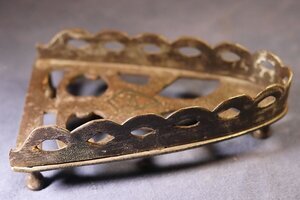 Dreieckiger Bügeleisenständer, Abstellmöglichkeit für ein heißes Bügeleisen. Auf der Oberseite des Boden befinden sich die Initialen H2 ( möglicherweise auch HM oder HN oder .. ) in drachenförmiger Raute