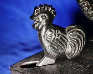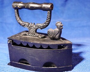 Kohlebügeleisen mit Hahn und Delphinen retro