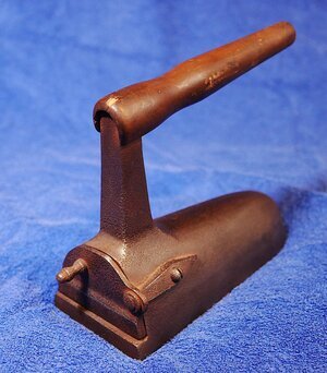 Der Name des Ochsenzungenbügeleisens kommt daher, weil in das Innere des in einem Stück gegossenen Bügeleisens ein ochsenzungenförmiger Eisenkeil von hinten eingeschoben werden kann. Dieser wird zuerst auf einem Herd erhitzt, dann eingeschoben und und der Boden des Bügeleisens erhitzt. Der Innenraum kann mit einer Klappe verschlossen werden, sodass der Eisenkeil nicht nach hinten herausfallen kann. Der hölzerne Griff ist an einem einzigen aus dem Eisen herausragenden Ständer an der Rückseite des Eisens befestigt. Der Boden des Innenraums besitzen besitzt 3 Längsrippen und an deren Ende 2 Querrippen um den Boden des Bügeleisens nicht zu stark zu erhitzen. An hinteren Ende - nahe bei der Klappe - befinden sich, jeweils zwischen 2 Längsrippen eine " 3" und ein "A". Der Bolzen ist derzeit (2023) im Eisen eingeklemmt und lässt sich nicht herausziehen. Möglicherweise müsste das Eisen von außen erhitzt werden, damit es sich ausdehnt, und den Bolzen freigibt.
