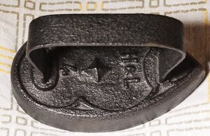 Das vorliegende Bügeleisen ist ein so genanntes Flacheisen aus Gusseisen und besitzt einen angeschweißten Bügel. Aufgrund der Dicke ist es eine Zwischenform zwischen Flacheisen und Blockeisen. Die ersten Bügeleisen bestanden aus einer Metallplatte und einem bügelartigen Griff. Daher auch der Name. Auf der Fläche zwischen den beiden Befestigungspunkten des Bügels befindet sich der Schriftzug "H & L", höchstwahrscheinlich der Name des Herstellers der aber nicht mit der heutigen gleichnamigen Firma zu tun hat. Dahinter befindet sich ein Stern und dahinter die (Größe) 4. Der äußere Rand des Eisens ist leicht erhöht und mit einigen Ornamenten geschmückt. Bügeleisen werden seit dem 17. Jahrhundert zum Glätten der Wäsche verwendet. Flacheisen wurden in Privathaushalten auf der Herdplatte, in gewerblichen Betrieben auch auf speziellen Bügeleisenöfen erhitzt und konnte dann so lange es heiß war zum Glätten der vorher mit Wasser eingesprengten Wäsche verwendet werden. Wurde das Eisen auf oder in einem Kohleofen erhitzt, musste es zuerst von Kohleresten gereinigt werden. War das Eisen zu sehr abgekühlt, musste es gegen ein gerade aufgeheiztes Exemplar ausgetauscht werden. D.h. zum kontinuierlichen Bügeln waren mehrere Bügeleisen vonnöten.