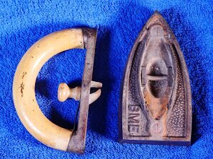 Kleines Satzeisen mit einem Body und einem amerikanischen Griff. Auf dem Body befinden sich die Buchstaben BME. Leider konnte die Abkürzung keinem Hersteller zugeordnet werden. Satzeisen gehen auf ein amerikanisches Patent aus dem Jahre 1871 zurück. Sie besitzen eine mit Asbest isolierte Bügeleisendecke und einem ausklinkbaren Holzgriff den man auf auf eines der meist 4 Eisen klemmen konnte. Im Laufe der Zeit entwickelten die Hersteller viele verschiedene Klemmmechanismen. Vor dem Bügeln wurde das Eisen auf einem Herd erhitzt und anschließend der Holzgriff aufgesetzt, um die Wäsche zu glätten.