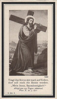 Totenzettel des am 30. 08. 1937 nach langer Krankheit verstorbenen eremit. Pfarrer Robert Hoening. Er war von 1917 bis 1937 Pfarrer in Bodendorf und bekleidete die Gemeinde durch das letzte Kriegsjahr und den Wiederaufbau nach dem 1. Weltkrieg.