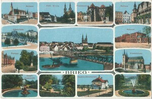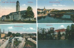 Ansichtskarte des Hotel-Restaurant Pension Cholin mit Ortsansichten im Jahr 1935