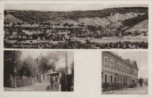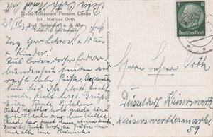 Ansichtskarte im Graudruck des Hotel-Restaurant Pension Cholin, damaliger Inhaber Mathias Orth, im Jahr 1935. Die Vorderseite zeigt oben ein Panoramabild des Ortes, vom Mühlenberg aus aufgenommen. Deutlich sind die Weinanbauflächen links am Sonnenberg und nach rechts zum Reisberg und am Reisberg zu erkennen. Das Bild unten links zeigt drei Objekte. Den Bahnhof Bodendorf/Ahr in der Mitte, links daneben ein eingezäunter Garten mit Stallungen und Toilettenhaus und rechts vorn das Kiosk "Wietz-Büdchen" an der Ecke zur Burgmauer. Die Ansichtskarte ist gelaufen nach Düsseldorf-Kaiserswerth, Datiert mit 28.4.1935 und Frankiert mit einer 6 Pfennigmarke Deutsches Reich.