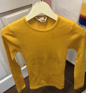 Shirts/ Pullis mit langen Ärmeln, rundem Ausschnitt in Schlupfform. Feingeripptes, enganliegendes Material. 10 Stück in verschiedenen Größen und Farben ( sonnengelb, hellblau, beige und rosa)