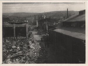 Schwarz-Weiß-Aufnahmen des Zettelmeyergeländes nach einem Bombenangriff