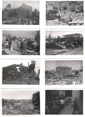 Zehn Fotografien die nach dem in Konz am 11.05.1944 erfolgten Luftangriff entstanden sind. Darauf sind zerstörte Fabrikhallen, beschädigte Gebäude und ansonsten entschadende Schäden auf dem Gelände der Firma Zettelmeyer zu erkennen. Die Bilder wurden kurz nach dem Bombeangriff und in den folgenden Wochen (13.05. - 06.06.1944) aufgenommen. Zu sehen sind darauf unter anderem auch Arbeiterinnen und Arbeiter, die mit Aufräumarbeiten und der Beseitigung der Schäden beschäftigt sind. Ein Foto ist außerdem während einer Arbeitspause entstanden. Der Luftangriff erfolgte durch amerikanische Bomber am Abend des 11.05.1944. Das zerstörte Betriebsgelände der Firma Zettelmeyer befand sich im Bereich der heutigen Grana- Konstantin- und Goethestraße. Ziel dieses Luftangriffs auf Konz war u.a. die Zerstörung des Eisenbahnnetzes, des Eisenbahnausbesserungswerkes und der Fabrikanlage. Die Alliierten hielten die Firma Zettelmeyer für einen Rüstungsbetrieb. Insgesamt starben in Konz bei dem Angriff fast 60 Menchen.