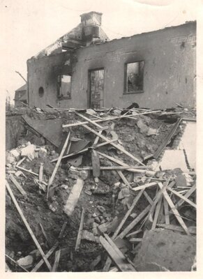 Schwarz-Weiß-Aufnahmen des Zettelmeyergeländes nach einem Bombenangriff