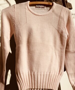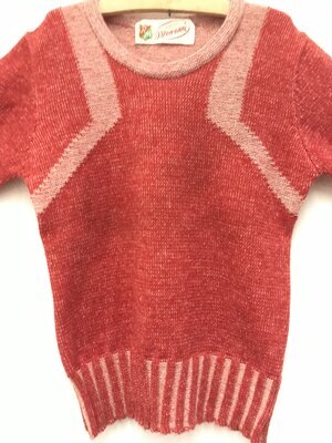 Strickpullover mit Rundhalsausschnitt aus wollartigem Material, in verschiedenen Farben. Hohe gerippte Bündchen an Taille und Ärmeln mit graphischem Muster im Brustbereich.