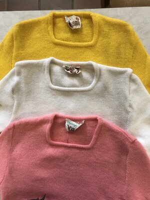 Shirts mit langen Armen und Karreeausschnitt in verschiedenen Farben ( hellblau, rosa, beige und sonnengelb)