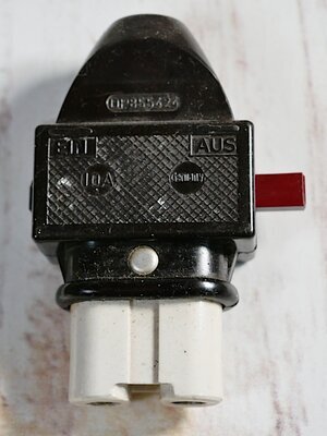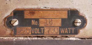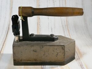 Das Bügeleisen mit der Gerätenummer 18 ist ein sehr schweres elektrifiziertes Blockeisen (Schneidereisen). Aufgrund seines Gewichts wurde es für Männer und professionelle Schneider für die Pflege von schweren Stoffen wie z.B. Uniformen gebaut. Der lange Holzgriff ist mit einer einzigen Griffstütze am hinteren Ende des Eisens befestigt. Die Griffstütze ist mit Schrauben auf der Oberseite des Elektroeisens befestigt. Ganz hinten, hinter der Griffstütze befindet sich eine Steckdose für einen Bügeleisenstecker. Auf der Rückseite das Typenschild mit zwei Schrauben befestigt. Das Bügeleisen besitzt weder Thermostat noch Schalter. Leider keine Informationen zum Hersteller und zum Herstellungsdatum. Das Bügeleisen hat eine Leistung von 700 Watt bei 220 V Wechselstrom. Erhalten ist auch der Geräteschalter mit einem rot-schwarzen Schalter der durch den Stecker hindurchgeschoben wird.
