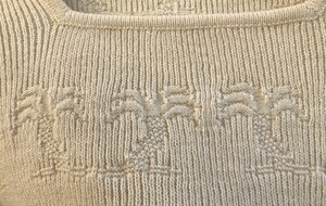 Strickpullover/ Langarm in beige mit Palmenmuster, Karree- Ausschnitt und hohem Taillenbund.