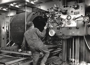 Schwarz-Weiß-Fotografien mechanische Werkstatt der Firma Zettelmeyer