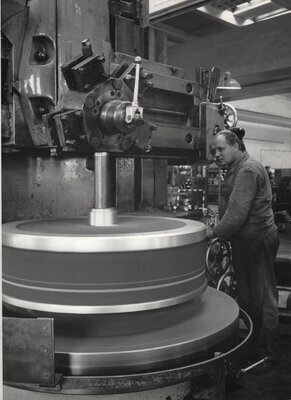 Sechs unterschiedliche Aufnahmen die im Jahre 1969 in der mechanischen Werkstatt der Firma Zettelmeyer entstanden sind. Man sieht jeweils Arbeiter an Dreh-, Bohr- und Fräsmaschinen. Eine mechanische Werkstatt ist ein Arbeitsbereich, in welchem Werkstücke mit verschiedenen Techniken bearbeitet werden. Drehmaschinen werden in der Regel zur Herstellung von runden Bauteilen verwendet. Bohrwerke benötigt man zur Entfernung von Materialien im Inneren eines Gegenstandes. Mittels Fräsmaschinen können Vertiefungen oder Profile in ein Werkstück eingearbeitet und Kanten abgeschrägt werden. Auf der ersten Aufnahme sind mehrere Arbeiter zu sehen, die an Drehmaschinen beschäftigt sind. Die Bilder zwei und drei betreffen Arbeiten einer nummerischen Drehmaschine. Eine nummerische Drehmaschine bearbeitet ein Werkstück selbstständig entsprechend den zuvor erhaltenen Eingaben. Zum einen ist ein Mann mit der Einstellung der Elektrik beschäftigt und das andere Foto hat das Einlegen eines Lochstreifens in den Leser der nummerischen Drehmaschine festgehalten. Die weiteren Bilder zeigen Bohrwerker, die eine horizontal arbeitende Bohrmaschine bedienen, und einen sogenannten Karusseldreher. Ein Karusseldreher bedient eine Drehmaschine, die über eine senkrecht arbeitende Arbeitsspindel verfügt. Bei einer solchen Maschine wird das Werkstück auf einer flachen Scheibe eingespannt. Es erfolgt dann eine seitliche Bearbeitung des Gegenstandes.