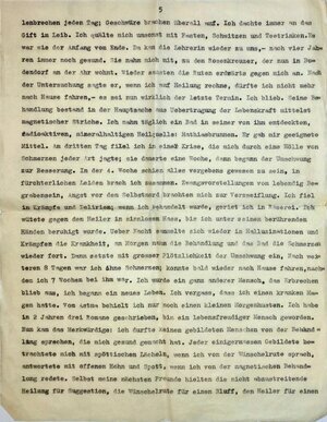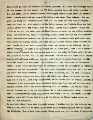 1930 erschien das Buch "Hammerschläge", einen Roman, in dem Heinrich Lersch über Menschen und Maschinen aus der Sicht eines Kesselschmied schrieb. Den Bogen spannend über medizinische Erfolge in der Krebsforschung und einer Krankenvorsorge, die der Medizinal Bürokratie unterlegen war erzählt er von einem Bericht den er über todbringende Erd- und Aetherstrahlen laß und so zu einem Heilkundigen kam, der ihm Linderung bei seinem an der Front im 1. Weltkrieg erlittenen Lungenleiden brachte. Die Überschrift, von Heinrich Lersch mit Bleistift über die ursprüngliche, durchgestrichene, Überschrift geschrieben zum Text lautet: "Die Ruten Gottes" Im Text finden sich noch einige schriftliche Änderungen. Die vorliegenden sechs Blätter sind offenbar ein Entwurf und wurden noch in Reinschrift übertragen.