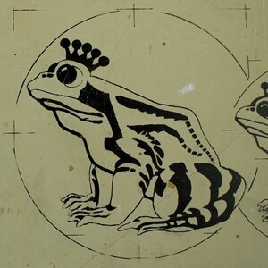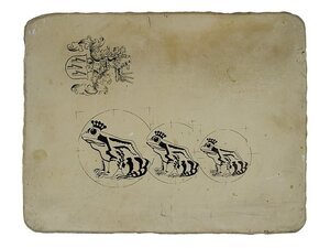 Bei diesem Objekt handelt es sich um einen Lithographiestein aus Solnhofener Plattenkalk. Er stammt von dem Unternehmen Werner & Mertz, das für seine Schuhcreme Erdal bekannt ist, und zeigt den charakteristischen „Erdal-Frosch“ in drei unterschiedlich großen Versionen. Seit 1903 ist der Frosch das Emblem der damals neuartigen Schuhcreme Erdal und entwickelte sich zum Logo für das gesamte Unternehmen. Da der Frosch auf dem Logo seit 1962 lächelte, kann dieser Stein mit einiger Sicherheit in den Zeitraum von 1903 bis in die 1930er Jahre datiert werden. Das auf dem Druckstein zu sehende Wappen oben links konnte bisher nicht zugeordnet werden.