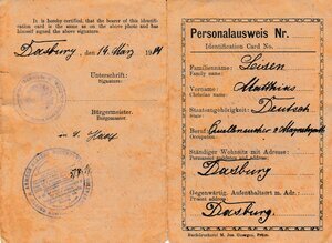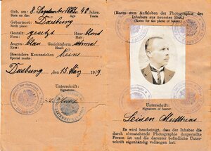Personalausweis von Matthias Leisen aus dem Jahr 1919