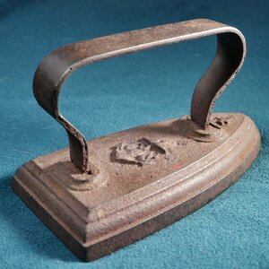 Das Flachbügeleisen besitzt einen angegossenen Bügelgriff in rheinischer Form und einen kanellierten Rand. Zwischen den Bügelstützen in der Mitte des Eisens befindet sich als Halbrelief die Abbildung eines Schiffsankers mit den Initialen C und F. Links oben von der hinteren Bügelstütze befindet sich eine 4 als Größénangabe. Interessant ist der Vergleich mit dem Bügeleisen Inventarnummer HR 424, das zu einer Zeit entstanden sein dürfte, als Lothringen (wieder) zu Frankreich gehörte. Das Flachbügeleisen gehört zu den massiven Volleisen, die aus Eisen oder Stahl geschmiedet oder gegossen und bereits ab dem 18. Jh. hergestellt wurden. Auf Grund seines geringen Gewichts und seiner flachen Sohle, die nahezu mühelos über die vorher mit Wasser besprengte Wäsche gleitet, erfreute es sich noch weit bis ins 20. Jahrhundert hinein großer Beliebtheit. Das Erhitzen auf dem Kohleofen oder in einer offenen Feuerstelle wie dem Kaminfeuer erforderte jedoch verschiedene Vorsichtsmaßnahmen, um die Bügelwäsche nicht zu beschmutzen oder sich am fest verbundenen Metallgriff zu verbrennen. Viele Büglerinnen wischten daher nach dem Erhitzen des Eisens mit einem Tuch, das sie an ihrer Schürze befestigt hatten, über die Bügelsohle. Als Hitzeschutz wurde oftmals ein dicker Handschuh oder ein Lappen, der um den Griff gewickelt wurde, verwendet.