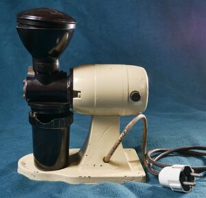 Elektrokaffeemühle des Herstellers ESM (Eisenwerke Milspe, heute Ennepetaler Schneide-und Mähtechnik G.m.b.H.& Co.K.). Die Kaffeemühle besteht einem Fuß und einem Ständer aus Gusseisen. Darüber befindet sich das Gehäuse für den Motor. An seiner Frontseite ist das Gehäuse für das Mahlwerk angebracht. An dessen Frontseite befindet sich eine Einstellmöglichkeit für den Mahlgrad. Der dazu notwendige Ring ist abgängig. Der Mahlgrad kann aber noch mit einem Schraubenzieher eingestellt werden. Über dem Mahlwerk befindet sich der Trichter zum Einfüllen der Bohnen mit einem Deckel auf dem das Firmenlogo angebracht ist. Unter dem Mahlwerk befindet sich eine Halterung für den runden Auffangbehälter. Trichter und Auffangbehälter sind aus Bakelit. Am Ständer ist seitlich ein Druckknopfschalter angebracht, mit dem der Motor ein- und ausgeschaltet werden kann. Ein Typenschild ist nicht vorhanden. Ein Logo befindet sich nur auf dem Deckel. Es ist ein Arbeiter mit einem quer gehaltenen golfschlägerartigem Werkzeug. Darunter die Buchstaben ESM. Die sonst bei diesem Hersteller übliche Krone als Firmenlogo ist nicht vorhanden. Ein etwa 1 Meter langes Elektroanschlusskabel endet in einem angeschraubten Schukostecker.