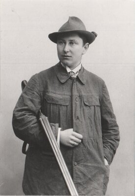 Fünf schwarzweiß Fotografieren, auf denen der letzte Burgbesitzer abgelichtet ist. Zwei sind Studioaufnahmen, die Franz Freiherr von Spieß in Jagdbekleidung zeigen. Die übrigen drei Fotografien zeige ihn mit seiner Jagdgesellschaft und der erlegte Jagdbeute.
